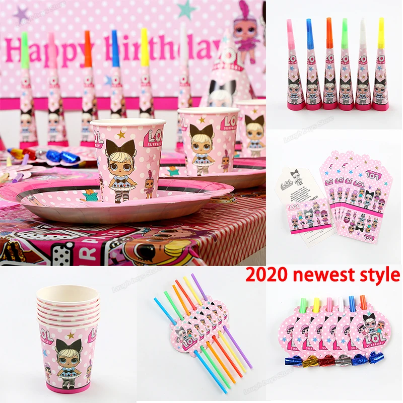 Name: Lol Surprise-platos y vasos de papel para fiestas, mantel Lol, conjunto de globos de aluminio Omg para niñas, fiestas de cumpleaños